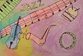 Wow Molly - you surprise me with each new piece of art! I love the musical theme and am really impressed with your depiction of the instruments. I listen to light jazz on Sunday mornings in the bathroom when I am getting ready for church. I will always think of you and your beautiful art each week when I listen to the radio. I miss you bunches and love you so very much, Nana xoxoxoxoxo