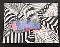 That’s a cool shoe, I like how you drew the sole & shoestrings. You did a great job with the black & white lines in the background.