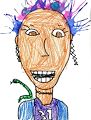 Wow Maeve! I hadn't seen this portrait. You did a super job! I love how you drew her smile eyes, nose. Did you blow the paint for her hair? Great earrings and necklace. Who is the little worm? Why does she have a number on her shirt? Way to go! Love you, Gramma