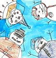Hi Maeve, I love your Snowman Huddle drawing! I feel as though I'm on the ground looking up at them. I like all of their outfits Each snowman is unique, different from each other. The sky behind them looks real.You did a terrific job! I am so impressed.
