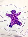 This one looks like you have a shoe print to the left and and the squiggly line looks like a spaghetti noodle and the pink make the picture really stand out. Looks like you have a pink heart on top of the shoe print. I like it, good job Kash!