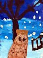 This looks fabulous Liam! You are growing as an artist every year. I love everything about this picture, especially the snow and detail of the owl. Well done!