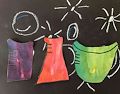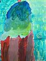 Walter, do I see stars and planets in the background? There are three figures in front ,red ,green and purple. Do those 3 represent clothing. I can't wait to here the story behind this piece you created. :)