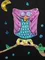 Hannah, I love this owl! I like the circle pattern on the belly and the lines on the wings. This owl looks cuddly to me. And the moon reminds me of a fortune cookie.