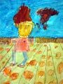 Con! I love your artwork. It really looks like Van Gogh (you should look that up on the internet, and you will see his paintings.) I love the dog, he is very cool. Whose house is in the background? And that scarecrow looks like a lady I know - she is really scary! The one in the middle is great, too. Keep sending me your artwork! I love getting it! Say hi to Jack for me! I love you guys like crazy!