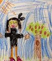 I love her smile and the tree, sun, and clouds in the background. I love her out-stretched arms like she is giving the world a hug.