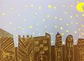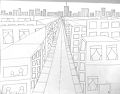 What a great drawing! I found it very interesting how you made the street get narrow toward the back and then the row of big buildings in the background look far away. Good job Ruby!