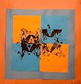 Definitely abstract. I see an Indian( on the right) doing a traditional dance. Love the orange.