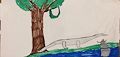 I love how you have trees in this drawing, it looks to me as if you are thinking of your own home, Granny's and also up North. How comforting to see nature in this art creation.