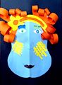 Hi Leah, What a wonderfully creative totem pole! I really enjoy seeing your art and delight in your growth as an artist. Your design and use of color is striking, and I'll bet your dad could make a replica of it for your back yard! The blue and white would look great beside the water - don't you think? Great job Leah! Love you, Jim
