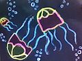I love the contrast between the dark background and the bright colorful jellyfish. Great job!!!