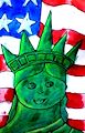 I love this piece. I am impressed by the use of light and dark green colors to create depth or texture on the Statue of Liberty. Great job!