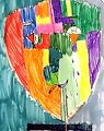 This is one of Kathryn's best art works so far. It could be a riff on African masks or a Cubist style creation. And is that an ice cream cone for an eye?