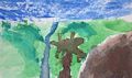 I LOVE THIS WATERCOLOR PAINTING!!! The colors you used are gorgeous! I love the blues and greens of this beach scene. It looks like Hawaii to me with a palm tree and mountain in the foreground and the ocean in the background. You did a great job! Love, Grandma