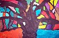 Wow! Another masterpiece by you!!! Great job, Alex!! I can't stop looking at it, it's so beautiful and interesting. I love the 6 different colors and the way you placed them on the painting in such a creative and pleasing way. I see a garden and colorful festival and happiness when I look at it. Can you explain to me how you made this? Did you do a drawing first? What was it like working with gouche paints? I hope you continue making great art like this one. Love, Grandma