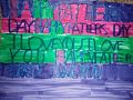 Troy's usage and placement of words demonstrates his feelings for his father. The combination of colors is refreshing.