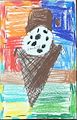 Great representation of a melting ice cream cone. Love the background colors.