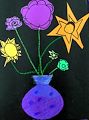 Oh my, Maddie. The garden painting is simply beautiful! I love love love the purple flowers and the big orange sun shining so brightly. You do lovely art work, honey.