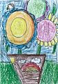 Such pretty flowers, Charlotte! They remind me of summer. The rainbow on the pot is an especially nice touch. Great job!