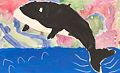 Looks like he's having a "whale" of a time with the Aurora lights in the sky! Great piece of art, Son. I love you!