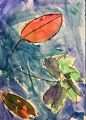 Very beautiful, Abby! The many colors and shades that you produced are really outstanding and the leaf designs swirling against the blue are perfect for the season! It makes us think of a windy fall day. This is one of our favorite of your artworks. We are so proud of you! Love, J and R