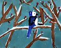 I love the colors you used on this picture. The blue bird really stands out perched on the tree limb with snow. I really like the little red buds on the tree limbs adding color to the back ground. Great job!!!!!