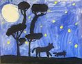 Wow Sydney you used some creativity to create the beautiful trees. The animals look like they are hunting in the dark. The full moon made your stars shine brightly in the dark blue sky.
