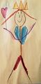 Wow I love the self portrait you made. The beautiful blue eyes, the rosy cheeks and the perfect brown hair style. By adding the background with multiple colors and shapes you really made your self portrait stand out. Great JOB!!!!!!!