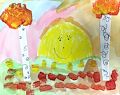 I love the detail of the decorations on the tree. The multiple colors makes the tree look like it is wearing fall jewelry. The hidden nest is very clever. Great job