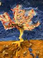 The monster in this piece of art looks scary. The background art is very interesting. You will have to explain this one to me. Nice job!