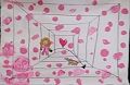 This is a cute picture of you and Maggie playing ball in a hallway. I see you used one of your favorite colors. I like the mix of hearts and circles showing your love for liittle Moo.
