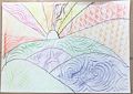 Jack your landscape drawing is so beautiful. I love the blue mountains and the rainbow colors in the sky. It looks magical. Good job.