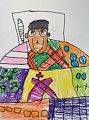 Tavio, this is a such a happy picture! I love your use of color and pattern. And best of all, the boy under the covers looks just like you! Great job, Nonni
