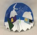 What a pretty picture you've created withcutouts. Snow drifts,evergreen buildings with snow on the roofs, blue sky and a little snow falling. You are so creative. Love you. Gail
