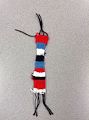 Caden, I like your red, white and blue artwork. It looks like it could be a bracelet and you must have worked very hard on it. We are proud of you, and we love and miss you.