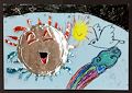 Caden your art working is very interesting. It looks like a frog in the water with grass around it like the frogs in our lake in Florida that you will see when you come to visit us. Keep up the good work. We are proud of you, miss and love you.