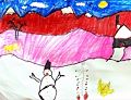 Caden, I love your snowman and winter scene. It looks like a cold day at your house. One of these days you will be able to make a real snowman and you can have your mommy send me a picture with you and your sisters and the snowman. Keep up the good work. We are proud of you, miss you and love you.