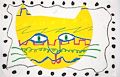This is very cool! I like the rainbow colors that you used. What would you call this? It almost looks like it is a person who is turned sideways and their mouth is the orange zig zags!