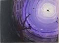 I absolutely love this! The color is so beautiful. I looked at it for a bit before I saw the figure sitting in the tree, so it was a little surprise when I noticed it. I can’t wait to ask you about the meaning and what it was like to paint it.