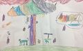 Brady, this drawing has so much going on - I keep seeing new things. There are animals walking up and down the purple and red part. The storm clouds are mean red with huge raindrops. It looks like there is a helicopter or other vehicle in the sky. You used so many colors and drew such details that people would never get tired of looking at this piece.