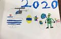 This is a perfect "Google" for the weird world we are living in. The first aid helicopter, covid, flag, soldier....all wearing masks. I love the American flag as the "e".