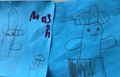 Mason, I love how you draw. The little faces make my heart happy! I love you and miss you. Love, Grammy