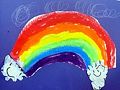 Hi George. I love the rainbow and the smiles at each end. Looks like you and your Mom and Dads faces in the clouds. Love you buddy. Grammy