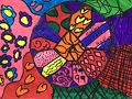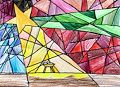 So bright with color. Love this abstract piece. I see numbers.