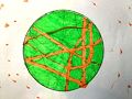 This looks kind of like the trip through the desert picture that has the cactus thorns in it But now, I think it looks like I’m looking into a microscope at a big green ball that has a strand of yellow yarn wrapped around it. I really like the bright yellow too.... where it crosses over and mixes with the green really gives this big ball a dimension that I might be able to put my finger into!
