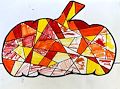 Very nice art work Anne! It looks like a cross between a bird and a cat! And the colored background is perfect!