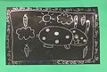 This looks like artwork that symbolizes Spring. I see the rabbit (bunny) which makes me think of Easter, and the carrots that he likes to eat, or that I might plant in a spring garden. The puffy clouds and sun show signs of spring weather. I love the border you made all the way around, creating a frame for your picture. I usually think of Spring pictures showing many colors, but I like the way you depict Spring just as well in black and white.