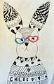 I love this rabbit. The black and white, with that pop of color in the glasses, looks great! The ears have such detail and must have taken lots of patience! Good job Chloe!