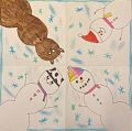 Wow, what stylin' snow people!! Love the different hats, the bucket hat, baseball cap and santa hat! Wait, is that a reindeer in disguise?? What a sneaky one!! I love your artwork Chloe, and look forward to each and every one!