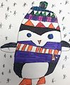 Chloe I love this penguin artwork. I love the way her hat and scarf match, and the snow is so beautiful. What is the penguins name?? Maybe freezy or icicle?? Keep up the great work!
